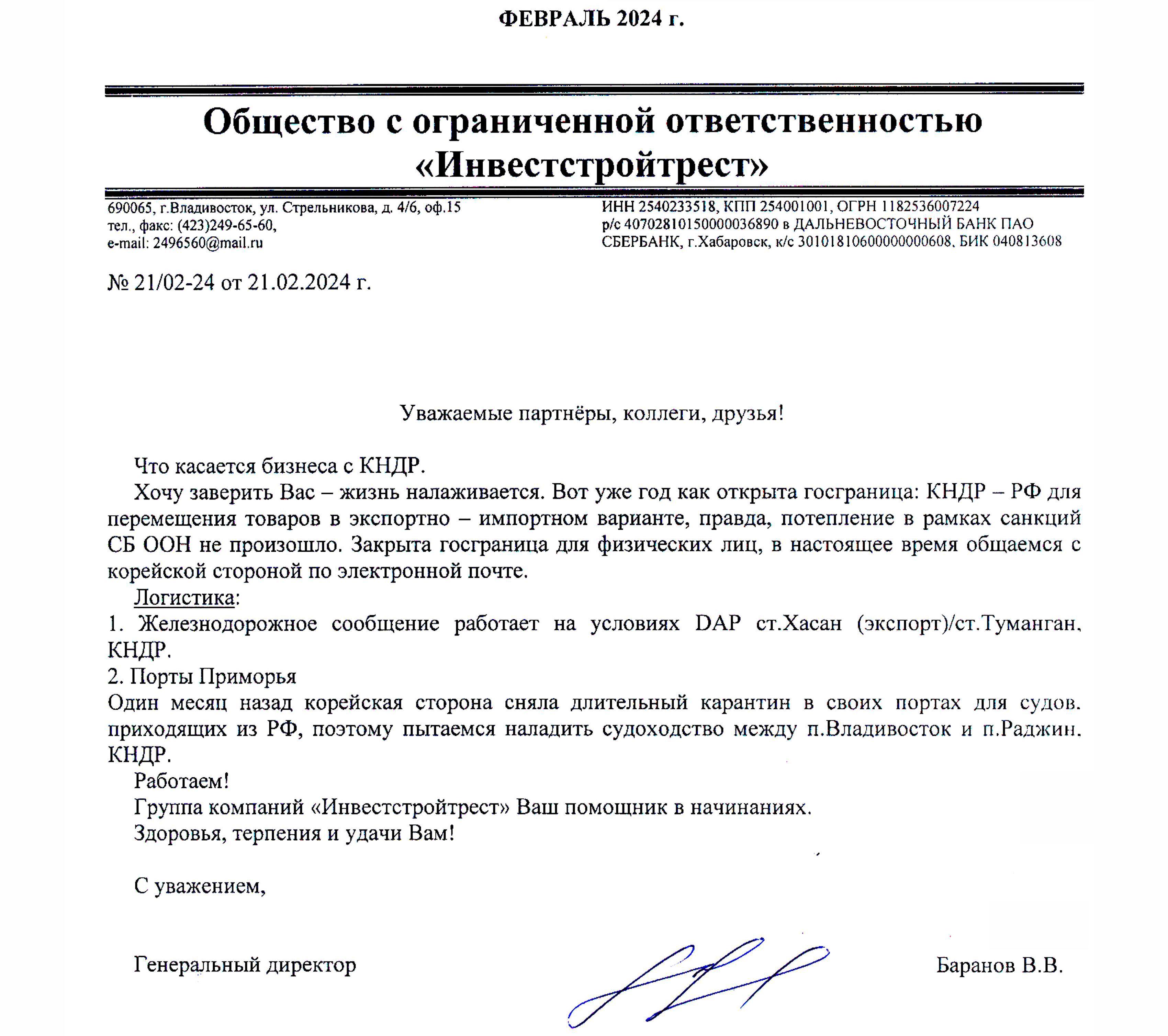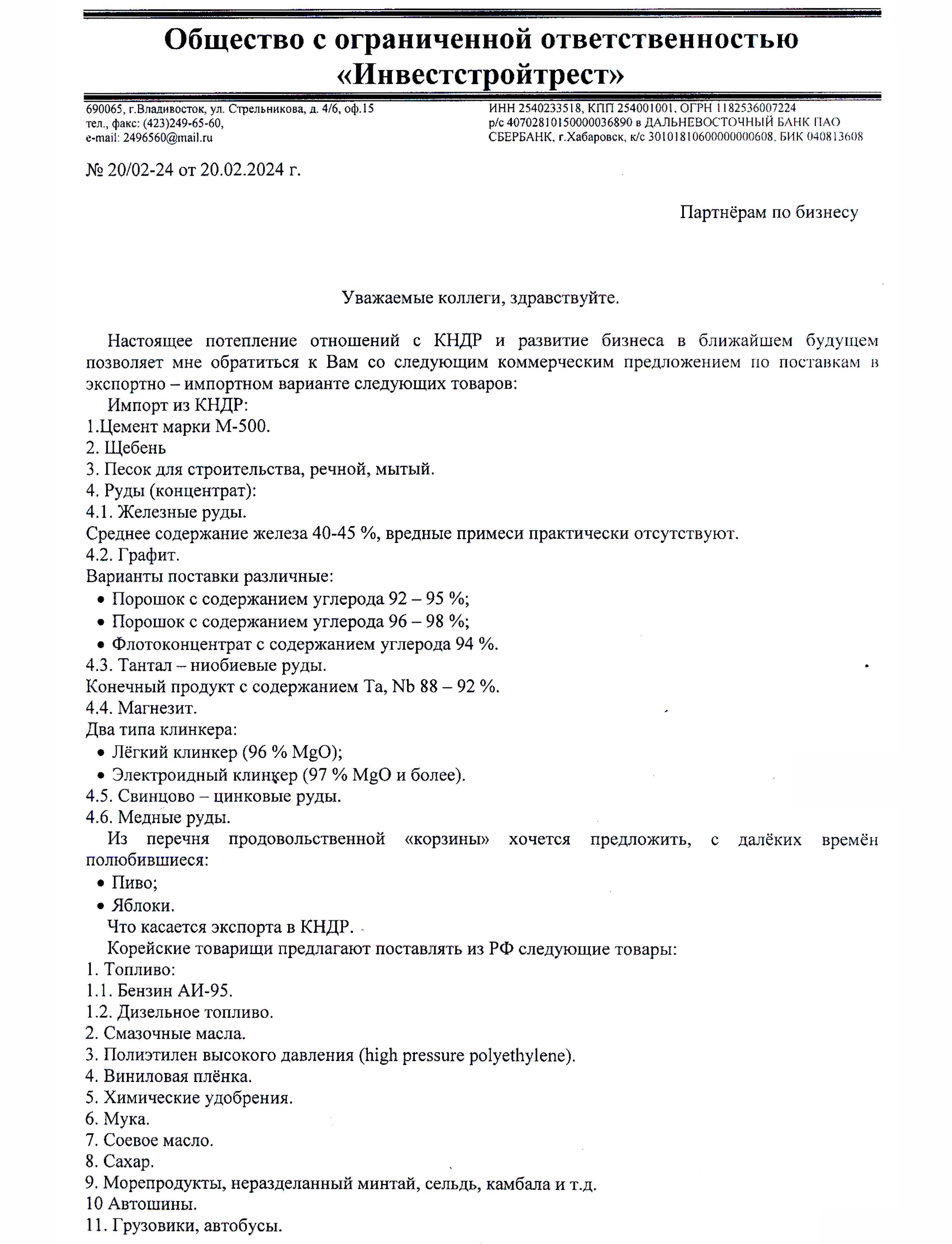 ООО «ИнвестСтройТрест», предлагает профессиональное транспортное экспедирование грузов из южных портов Китая, Вьетнама, через морской порт Раджин, КНДР, где работает официальный офис компании.